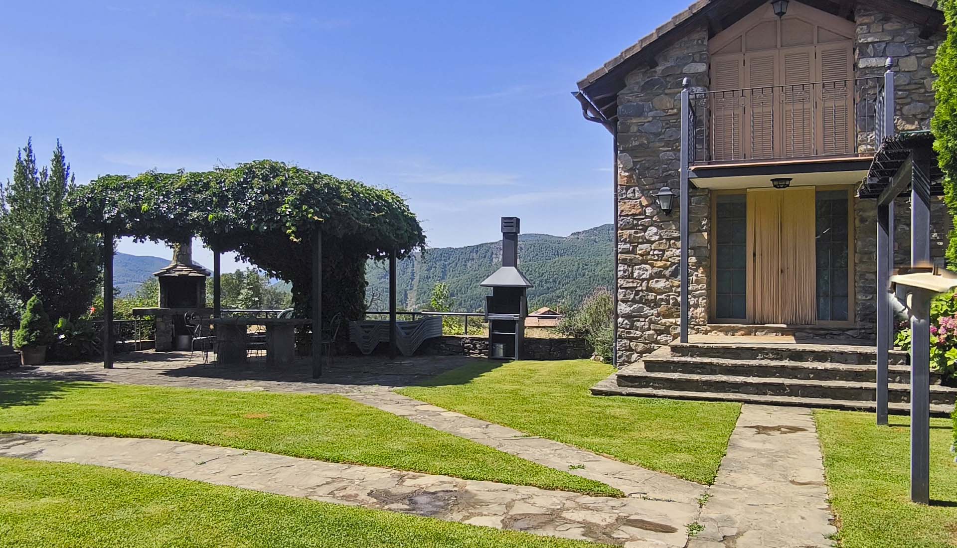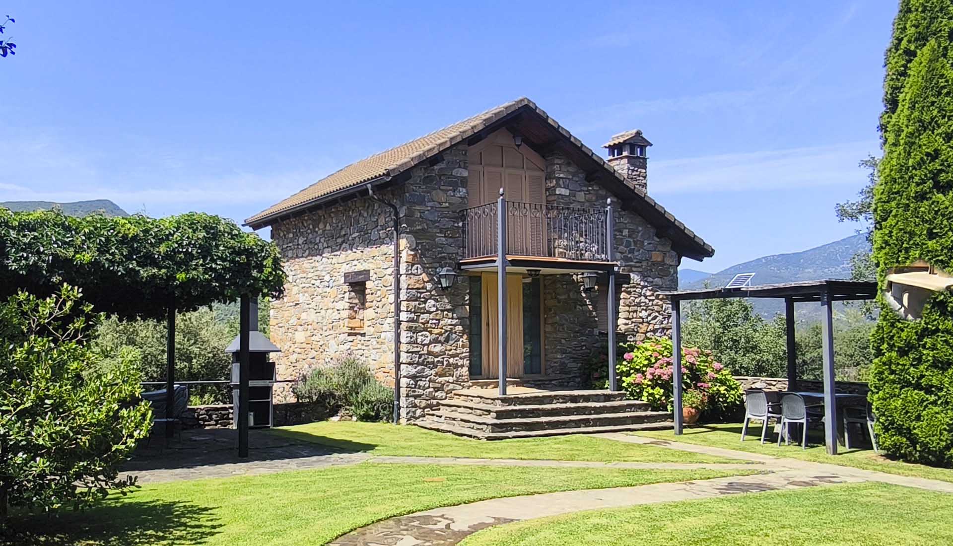 Te ofrecemos dos casas independientes, tradicionales de montaña, construidas en piedra y madera. Tienen en común una zona ajardinada vallada, con barbacoa, mesa de piedra, fuente y aparcamiento para los vehículos.